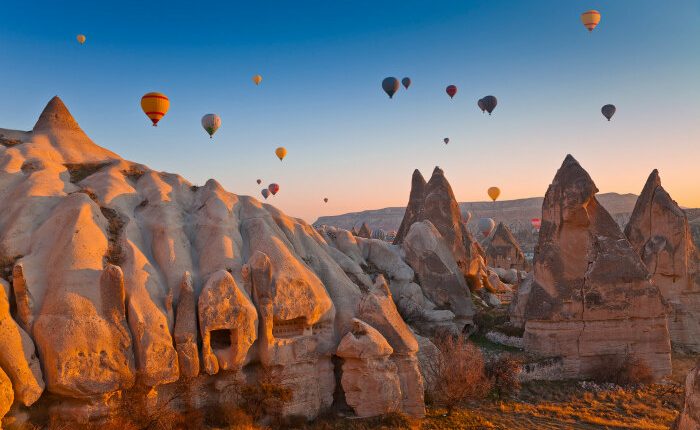 В самом сердце Турции находятся удивительные марсианские пейзажи Каппадокии. Говорят, что именно они вдохновляли режиссера «Звездных войн» Джорджа Лукаса. Вулканические горы самых невероятных форм и цветов, знаменитые каменные «грибы» и целые пещерные города удивят даже самых искушенных путешественников. Здесь легко, комфортно и недорого (от 30 долларов за двоих) можно пожить в настоящем пещерном отеле. Каппадокии — это историческое название данной неповторимой местности на востоке Малой Азии, употребляющееся со времён античности вплоть до наших дней. Ландшафт характеризуется чрезвычайно интересным внешним видом вулканического происхождения и обширными пещерными монастырями, ведущими свою историю со времён ранних христиан (они датируются 1 тысячелетием нашей эры). Национальный парк Гёреме и пещерные поселения входят в список Всемирного наследия ЮНЕСКО.