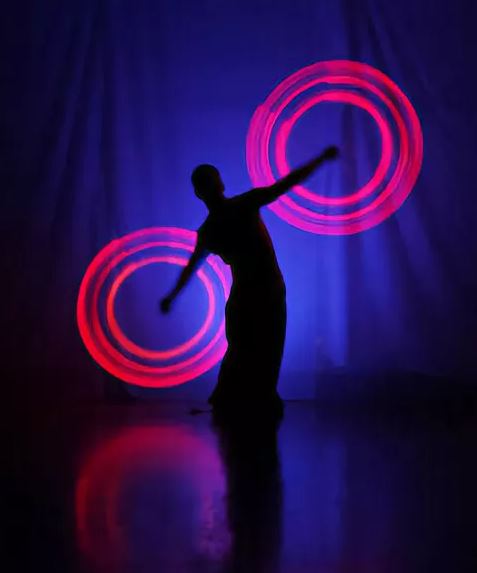Огненные шоу всегда завораживают и многие юные зрители настолько увлекаются, что хотят этому научиться. Пожалуйста, но только без огня! Вам в поинг-группу. В качестве реквизита здесь используют светящиеся светодиодные шары.
