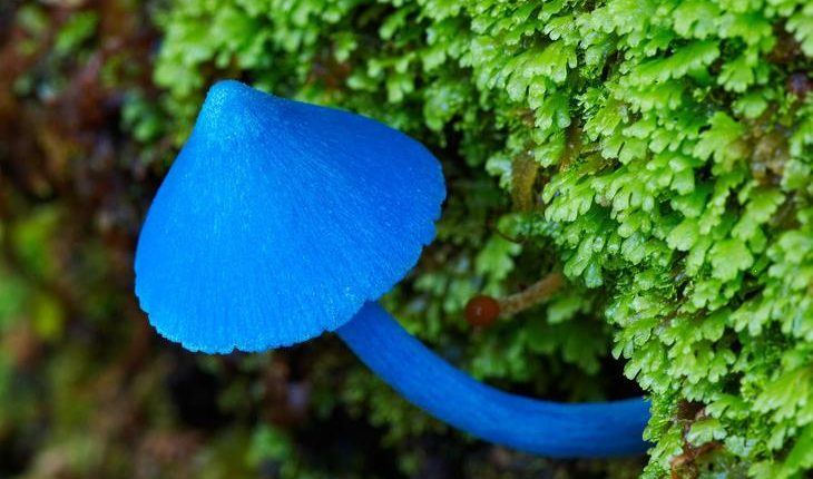 Голубой грибНе менее прекрасен другой представитель царства грибов — Entoloma hochstetteri. Произрастает он в Индии и Новой Зеландии. У этого гриба цвета лазури есть красноватые споры, все остальное его тело полностью голубое. Такой цвет грибу придает пигмент азулин, встречающийся также у некоторых видов морских беспозвоночных. Не советуем, впрочем, готовить эту красоту на ужин — гриб несъедобен, хотя токсичность его изучена мало.