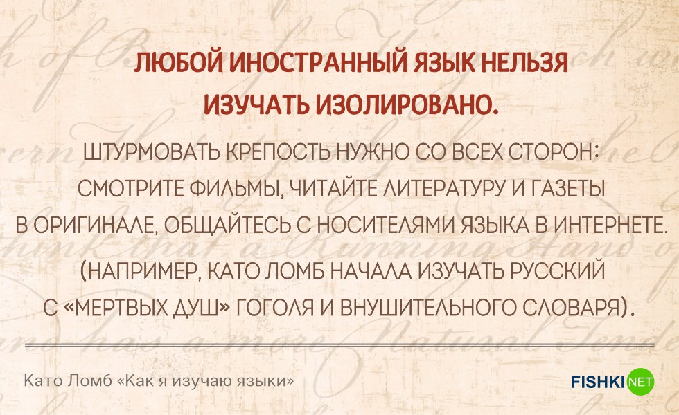 Като Ломб предложила простую формулу, которая определяет результат в освоении языка: