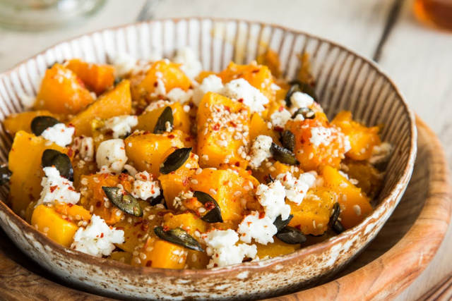Теплый тыквенный салат с фетой