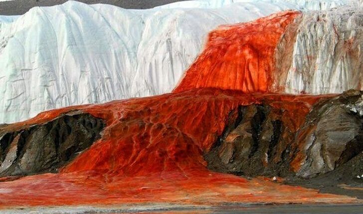 Вода окрашивается в красный цвет из-за высокой концентрации в ней железа. Когда вода вступает в контакт с воздухом, она ржавеет и, стекая, оставляет кровавые пятна на льду. Пользователи Reddit шутят, что в древние времена моряки, мягко говоря, удивились бы этому явлению, которому тогда не было объяснения.