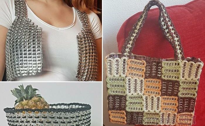 Большим интересом у молодежи пользуются сумки из ключ-колец от банок. Аксессуары получаются очень стильными, а если учесть, что они не повторяются, то еще и уникальными. Из алюминиевых деталей плетут сумки самых разных видов: маленькие клатчи, объемные тоуты, элегантные мессенджеры. Дизайн и форма изделий ограничиваются только фантазией мастера.