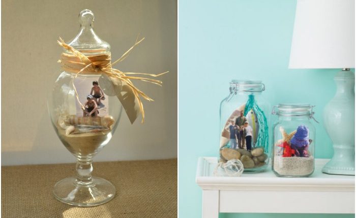 Наполните стеклянные банки сувенирами из путешествий, песком с лазурного берега, ракушками и фотографиями. Таким образом вы надолго сохраните воспоминания о путешествии.