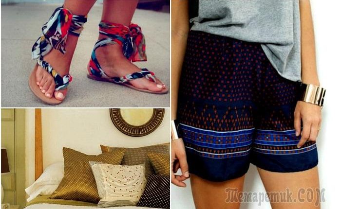 С помощью двух шифоновых платков можно превратить самые простые вьетнамки в модные летние сандалии. Нужно просто красиво оплести платками резиновую перепонку и завязать на щиколотке.