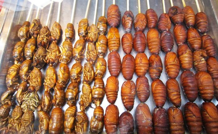 Скажите, вот вы любите жареный арахис? А жители Южной Кореи за обе щеки уплетают жареных куколок шелкопряда. Те, кому посчастливилось попробовать этот деликатес, утверждают, что куколки хрустящие и представляют собой нечто среднее между чипсами и семечками.