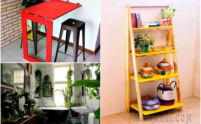 При обустройстве жилья каждый человек сталкивается с определенными проблемами. Для кого-то такой проблемой является недостаток площади, для других — отсутствие средств. Как бы там ни было, но и тем и другим стоит взять на вооружение идею создания подобного откидного столика, который в сложенном виде выглядит, как обычное зеркало в яркой раме.