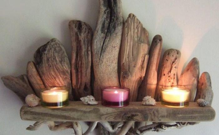 Обработанные коряги хорошо подойдут для создания настенных полочек или стеллажей.