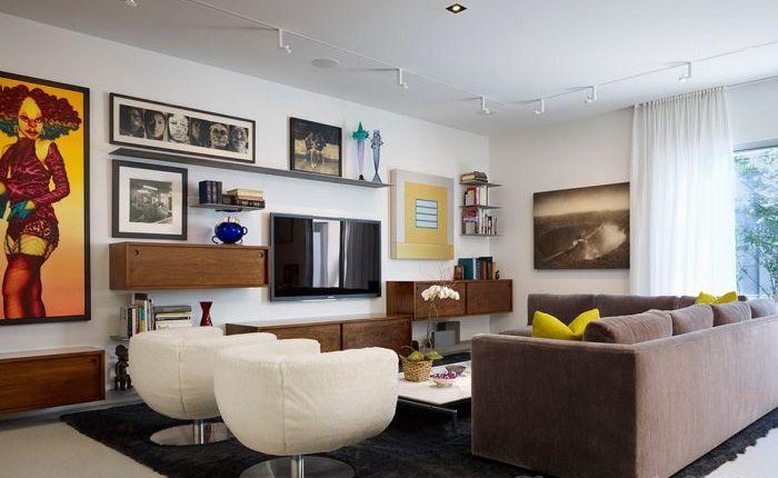 Картины в зоне для просмотра телевизора, которые внесут свою изюминку в интерьер гостиной комнаты.