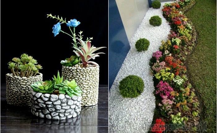 Мы сегодня остановимся на обычной морской гальке. Ее можно использовать с пользой как в интерьере, так и для украшения приусадебного участка.