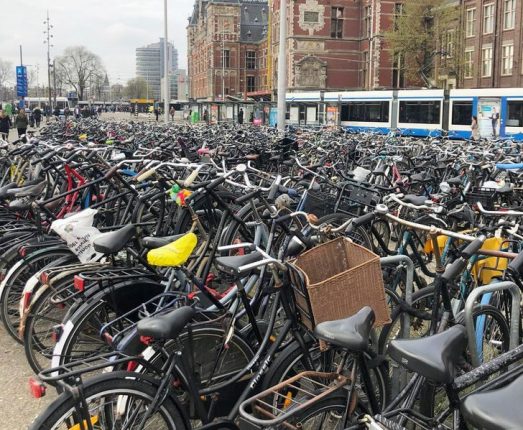 То есть на каждого голландца приходится 1,3 велосипеда. А так как их нужно где-то оставлять, то велопарковки расположены повсюду. И они зачастую под завязку забиты велосипедами.