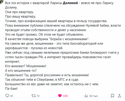 Речь о резонансном деле Ларисы Долиной, где суд принял решение, противоречащее базовым нормам гражданского права.