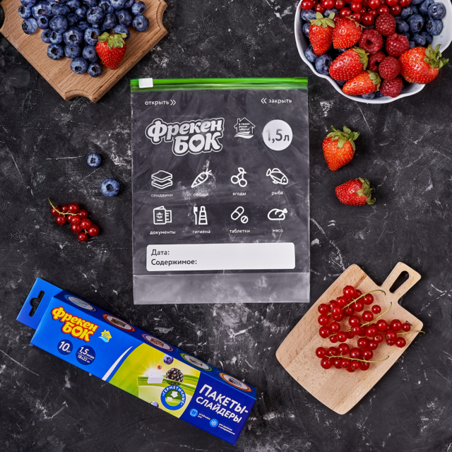 - Пакеты-слайдеры с замком герметичные, можно не переживать за чистоту морозилки.