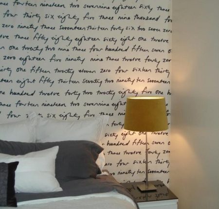 Занавески с надписями и рисунками на стенах, довольно приятный и простой способ украсить стену в спальне над кроватью.