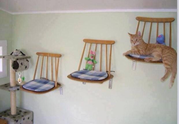 У вас живет большая собака? Отлично, стул станет удобным держателем для миски, а кошечке любимой когтеточкой!