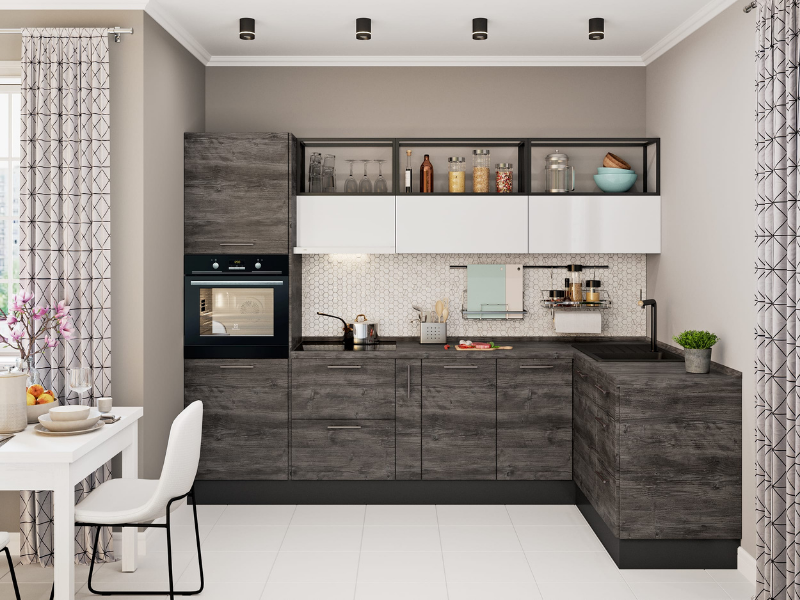 Еще один плюс — разнообразие стилистических решений и вариантов расположения мебели. Это может быть линейная, угловая, П-образная или островная кухня. Можно подобрать мебель под современную классику, скандинавский минимализм, природную эстетику, необычную эклектику или ультрамодный лофт.