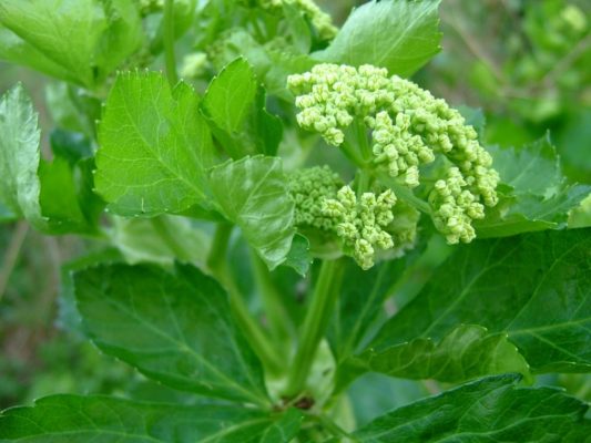 Любисток лекарственный. Применяются все части полезного растения. Улучшает кровообращение, тонизирует, ускоряет появление менструации и снимает боль. 2 ст. ложки залить 1 ст. кипятка, настаивать час. Принимать по 50 мл 3-4 раза в день.