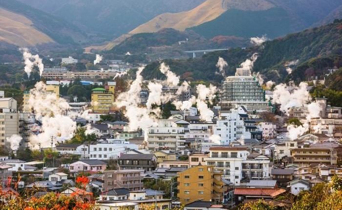 Город Беппу на острове Кюсю в Японии утопает в облаках пара благодаря активности почти трёх тысяч геотермальных источников, которые ежедневно выносят на поверхность более 130 тонн горячей воды. На большее способны только источники Йеллоустонского национального парка. Столь высокая геотермальная активность объясняется соседством города с крупнейшим в Японии активным вулканом Асо, который находится в 60-ти милях.