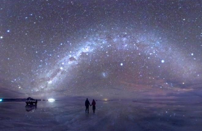 Почва в этой местности в Боливии настолько ровная, а на линии горизонта так мало помех, что ощущение глубины полностью теряется.