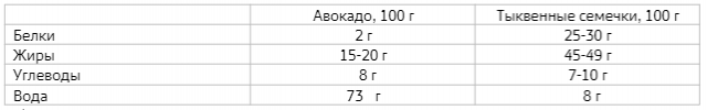Поддерживать достаточное количество ПНЖК в организме крайне важно. Авокадо и в тыквенные семечки как раз и содержат эти незаменимые кислоты, правда в разном количестве.