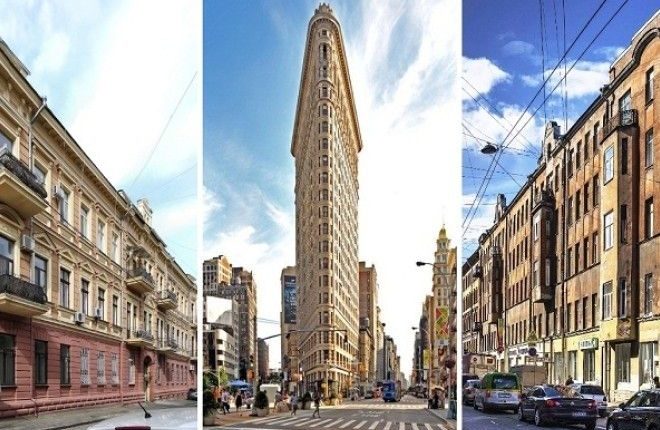 Плоские дома Санкт-Петербурга (на набережной Мойки и Боровой улице, Россия)