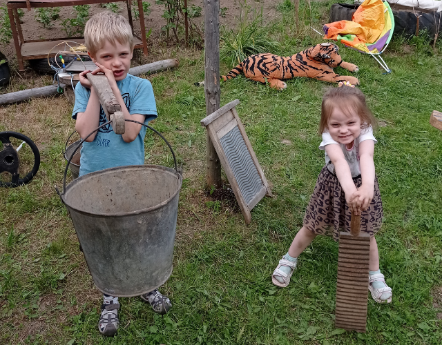 Этим летом дядя мне показал утварь для стирки, которой пользовалась ещё моя прабабушка Матрёна Григорьевна. А потом рассказывал историю о том, как помогал бабушке Нине со стиркой. И сразу же моё воображение разыгралось и я оказалась на несколько десятков лет в прошлом.