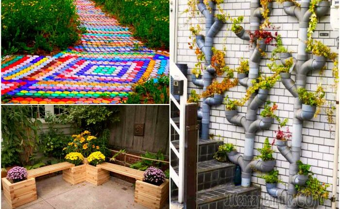 Используйте пластиковые крышки разных цветов для создания ярких и оригинальных садовых дорожек. Конечно, работа достаточно кропотливая, но если хорошо постараться, результат превзойдет все ожидания и полностью преобразит участок.