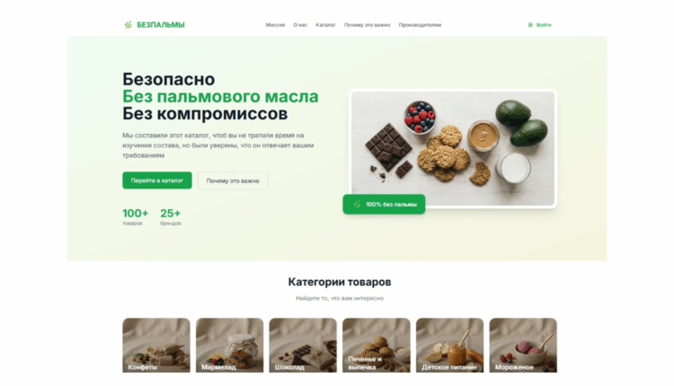 Каталог «Безпальмы.рф» создан как навигационный инструмент для такого разумного выбора. Теперь любой покупатель может за пару кликов найти продукт, в котором нет пальмового масла, и быть уверенным в его составе.