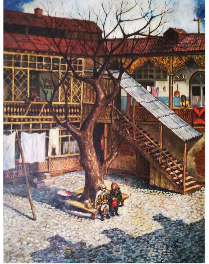 «Тбилисский дворик» — в нем раньше жила моя вторая бабушка. И эту работу я не продаю. Это память…Картину дважды похищали с выставок, но она вернулась ко мне.