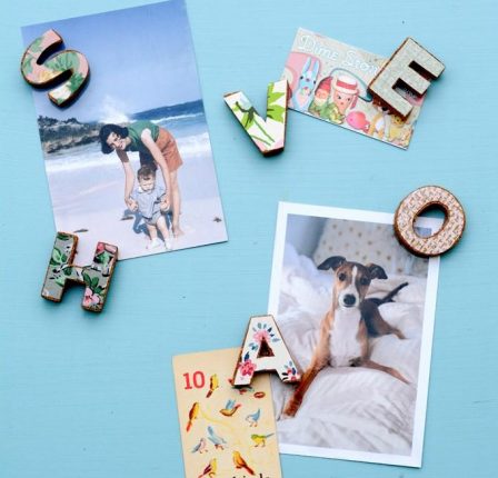 2.Когда, бумажные буквы подогнаны по размеру к деревянным их нужно приклеить. Намазываем клеем для декупажа или ПВА поверхность деревянных буковок и прикладываем вырезанные бумажные сверху. У вас все должно полностью совпадать. Если нет. То потом можно аккуратно излишки бумаги срезать ножом или наждачной бумагой обработать.