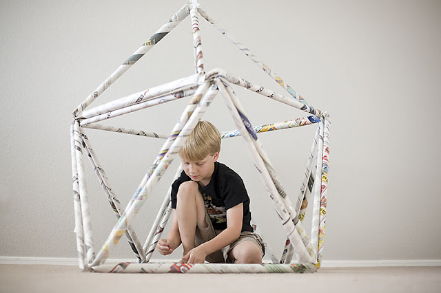Сверните газетные листы в «палки» и позвольте ребенку построить классный форт. Его можно раскрасить в любой цвет.