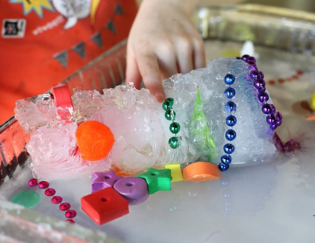 Заморозьте разноцветные безделушки в длинной емкости, наполненной водой. Затем дайте детям принадлежности для раскопок: пинцеты, пипетки, ложки, соль, теплую воду. Пусть побудут великими археологами, которые извлекают из ледяной глыбы сокровища.