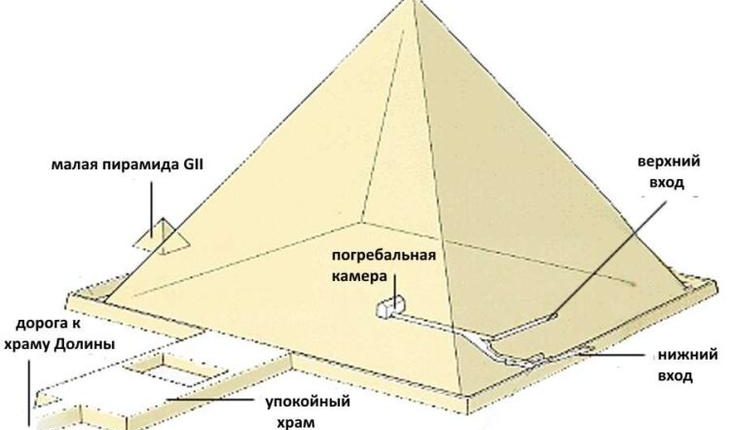 Следует отметить, что в пирамиде Хефрена изначально было два входа, один располагался под землей и вел в погребальную камеру. Второй на самом некрополе, выше от земли, примерно на высоте 15 метров. Есть еще вход, но он был сделан грабителями, которые и вынесли все, что находилось внутри сооружения.