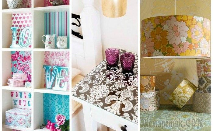 Эта идея идеально подходит для тех, кто давно хочет обновить свой интерьер или старую мебель, а также давно присматривается к красивым дизайнерским обоям (на которые не у всех хватает бюджета). Для такого декора много обоев не понадобится, зато вы можете подобрать их по цвету или по рисунку к другим предметам интерьера. Так вы сделаете пространство стильным, заодно и обновите его.