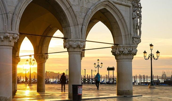 Сан-Марко – это центральная площадь города, которая считается одной из самых красивых в мире. Представляете, какой поток туристов здесь на протяжении всего дня? Но она определенно стоит того, чтобы проснуться как можно раньше и наблюдать, как солнце начинает обволакивать старинные здания. Зрелище захватывает дух, а отсутствие толпы людей позволяет сделать красивые фото на память.