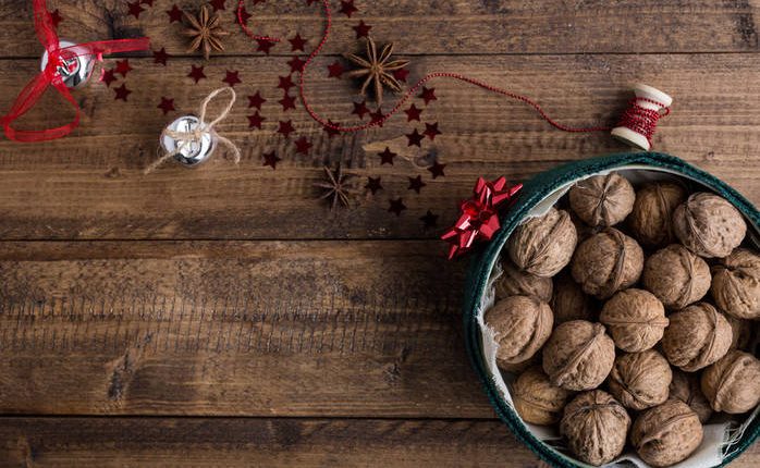 Орехи незаменимы для оформления дома, праздничного декора: елочных игрушек, праздничных композиций, декоративного венка и даже топиария.