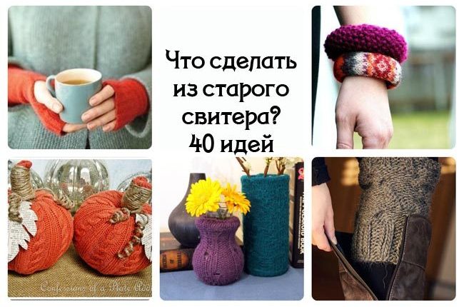 Что же можно сделать из старого свитера? Вариантов много – начиная от одежды и головных уборов, заканчивая элементами декора и украшениями! Что касается одежды и аксессуаров то вот интересные идеи.