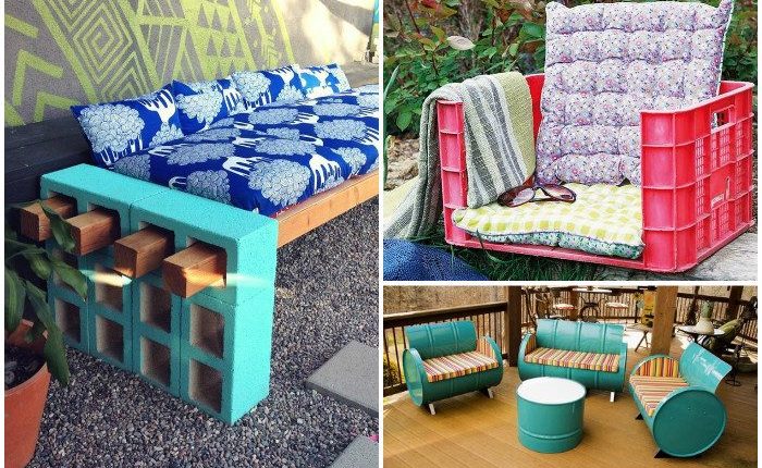 Пластиковые бутылки — бросовый материал, из которого, несмотря на его дешевизну, можно сделать массу полезных вещей. Например, садовую мебель своими руками. Просто свяжите бутылки, закрытые крышками, веревками или скрепите прозрачным скотчем. Если получившаяся конструкция кажется недостаточно недостаточно эстетичной, то накройте ее пледом. Замаскировать пластик помогут и текстильные чехлы для мебели.