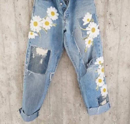 Конечно, с обычной заплаткой из чего попало, внуки точно не станут ходить. Но если немного покреативить, можно преобразить джинсы до неузнаваемости.