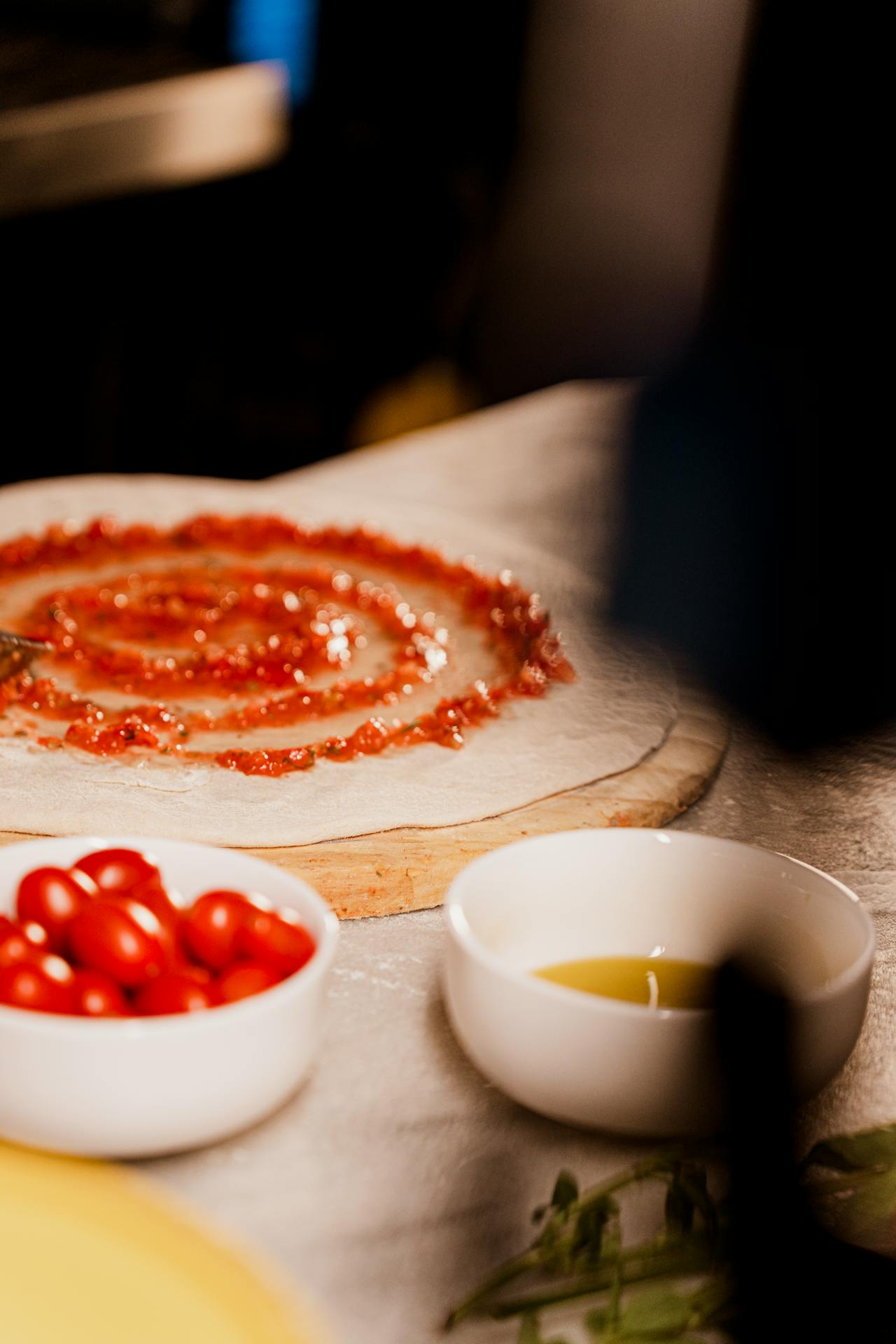 Разогрейте духовку до 200 °C. Намажьте 1 лист лаваша томатным соусом, добавьте сыр моцарелла, помидоры, оливки и шпинат. Запекайте 8–10 минут до золотистой корочки.