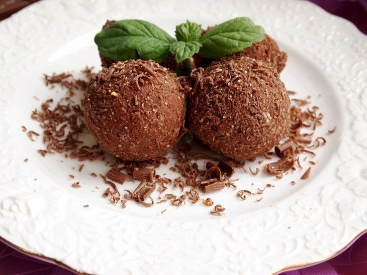5. Через 20 минут, натереть шоколад (20 гр.) на мелкой терке и обвалять в нем нашу “колбаску” и шарики.