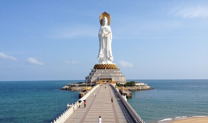 Один из самых крупных буддистских комплексов Азии, занимающий обширную площадь в 50 км². Он состоит из внушительного храма Гуаньинь со 108-метровой статуей богини Милосердия на крыше и оформленного в соответствии с классическими традициями Фэн-шуй ландшафтного парка. Комплекс расположен примерно в 40 км от курортного города Санья. Он раскинулся у подножья горы Наньшань.