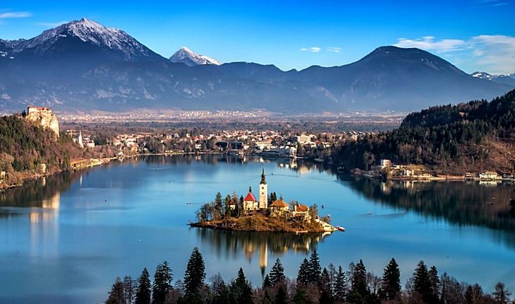 Водоем, расположенный среди горных вершин на северо-западе Словении, имеет главной достопримечательностью единственный островок с часовней Успения. Там помещен окруженный легендами Колокол Желаний. Осмотреть живописные красоты горного озера можно с водной поверхности, передвигаясь на особенных лодках «плетнах».