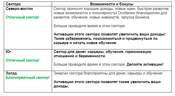 Благоприятные сектора, где нужно больше находиться и делать активации: