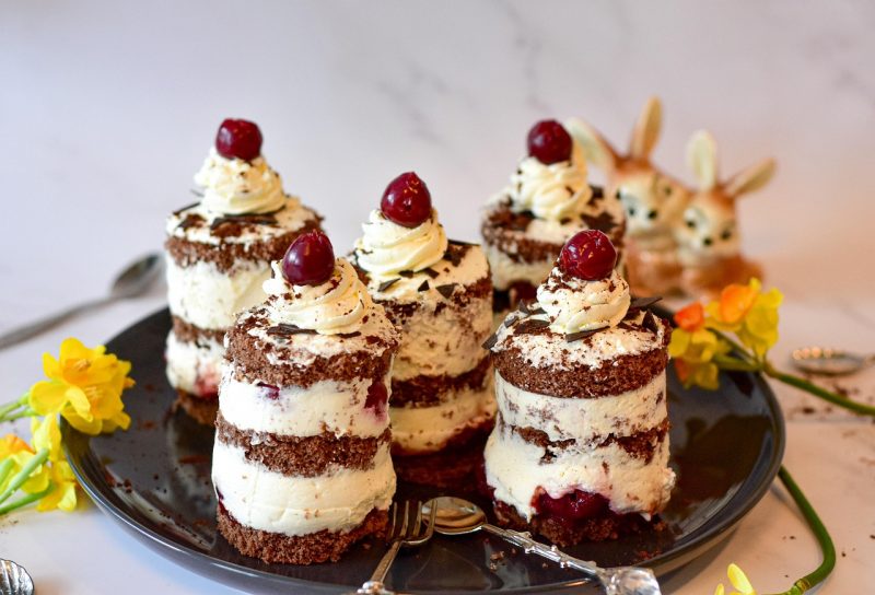 В этих странах любят сытные, многослойные и ярко выраженные десерты. Один из самых узнаваемых — знаменитый «Шварцвальд» (или «Чёрный лес»), который состоит из шоколадного бисквита, вишни и взбитых сливок. Его часто готовят в мини-форматах, делая удобные порционные пирожные.