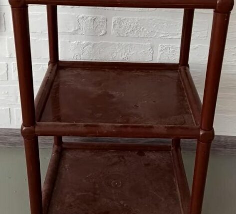 У многих есть или когда-то была такая простая пластиковая полка-этажерка. Конечно, в одиночку она смотрится не очень стильно, однако, после небольшой переделки, может получиться прекрасная дизайнерская мебель!