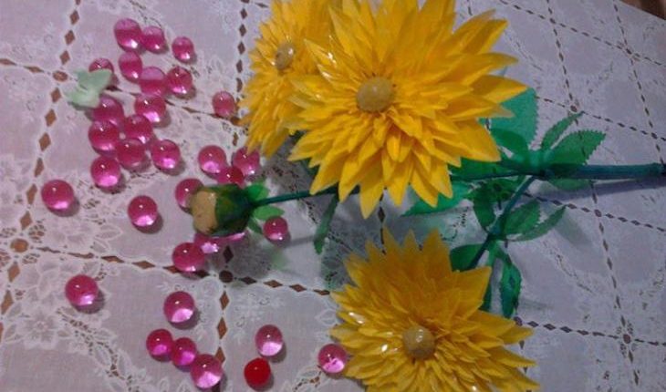 Жёлтые георгины из пластиковых бутылок добавят ярких красок в ваш палисадник и