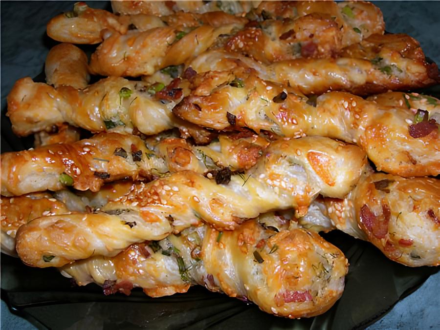 Хрустящие слоёные палочки с беконом, сыром и зеленью — идеальная закуска за 30 минут