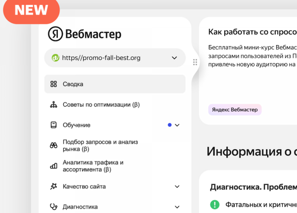 Яндекс Вебмастер обновился. Изменился дизайн меню – оно стало компактнее, а навигация – проще. Также сервис перешел на новую светлую цветовую схему. Обновление уже доступно большинству пользователей сервиса. В течение недели новый дизайн станет доступен всем.
