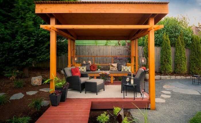 Даже в небольшой беседке можно создать зону уюта и комфорта.